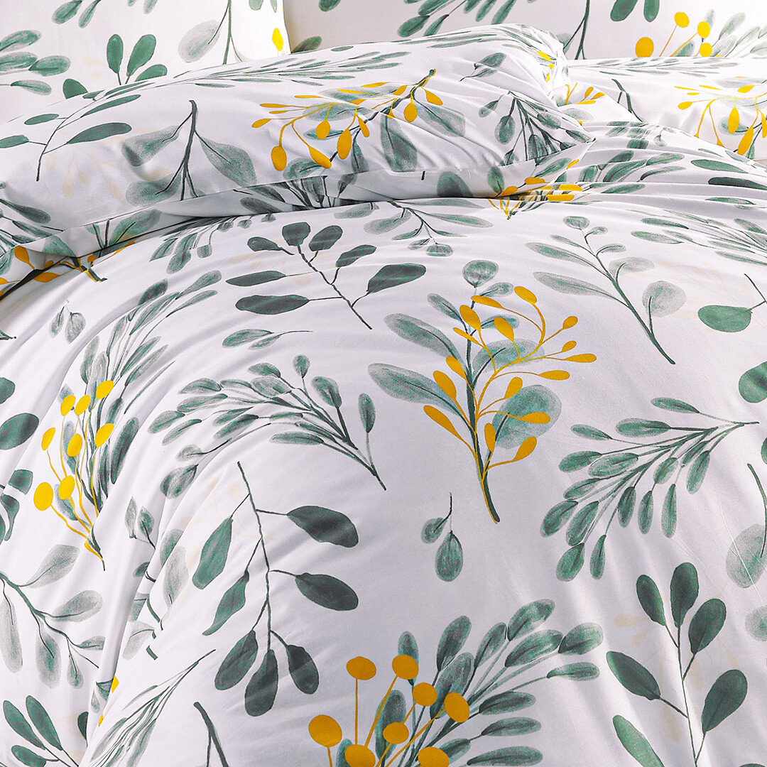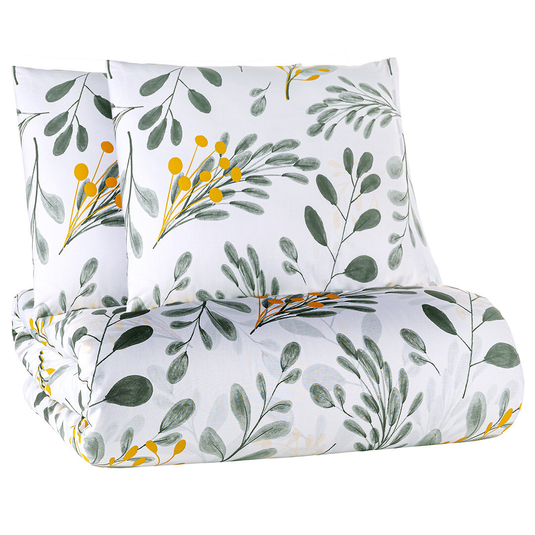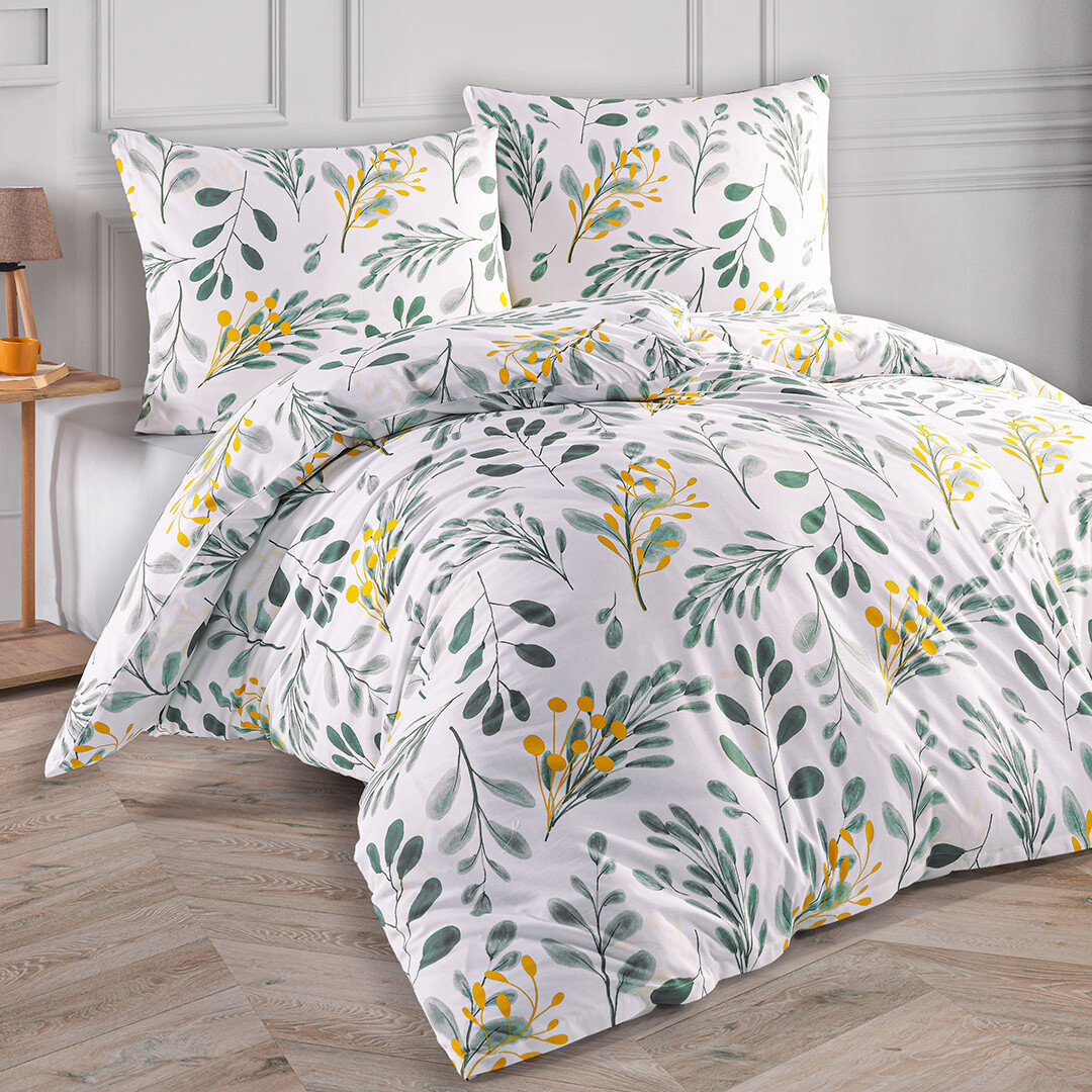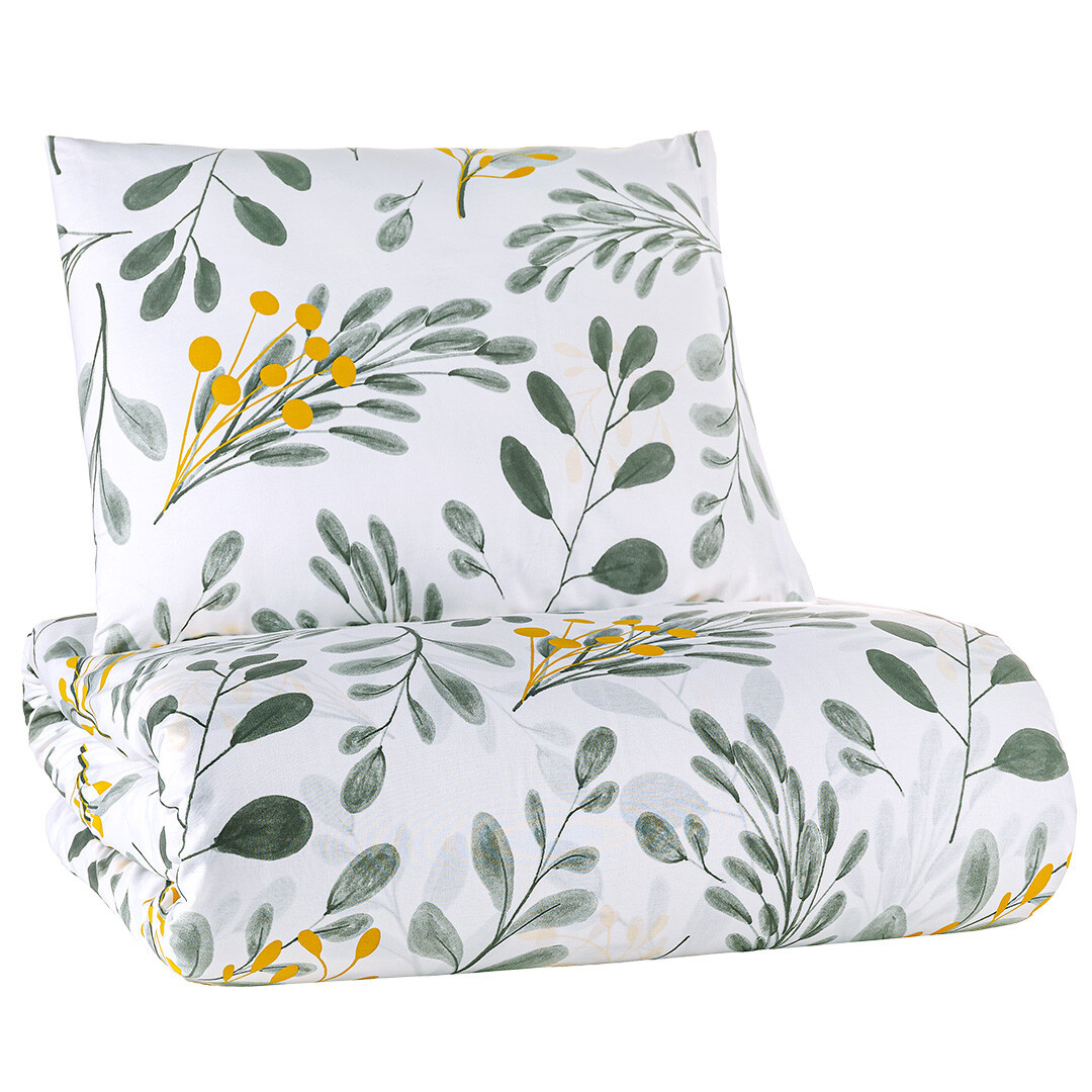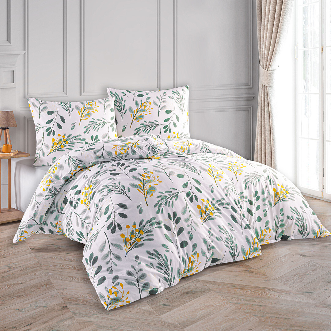 Přírodní a decentní vzhled dodá Vaší ložnici povlečení Floranc, které je ojedinělé svým elegantním vzorem. Jemné šedo zelené větvičky jsou doplněny větvičkami v hořčicové barvě. Tyto žluté detaily působí živě a kontrastně, díky čemuž toto povlečení nepůsobí jen neutrálně, ale dostává moderní a svěží nádech.