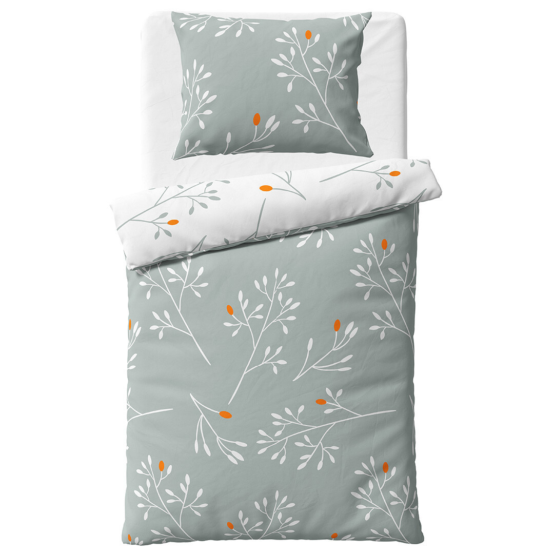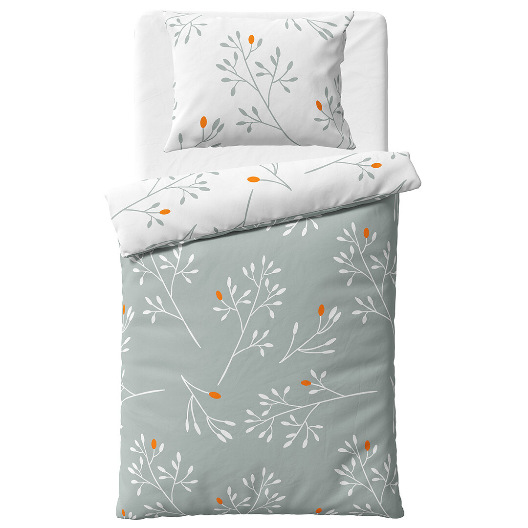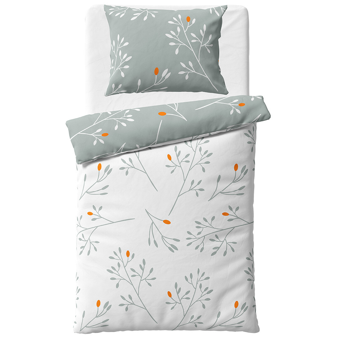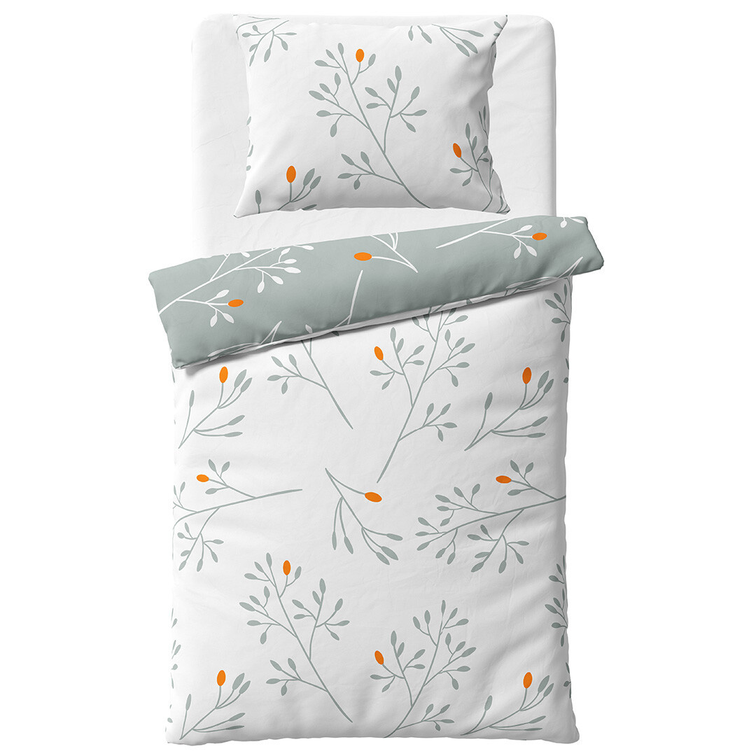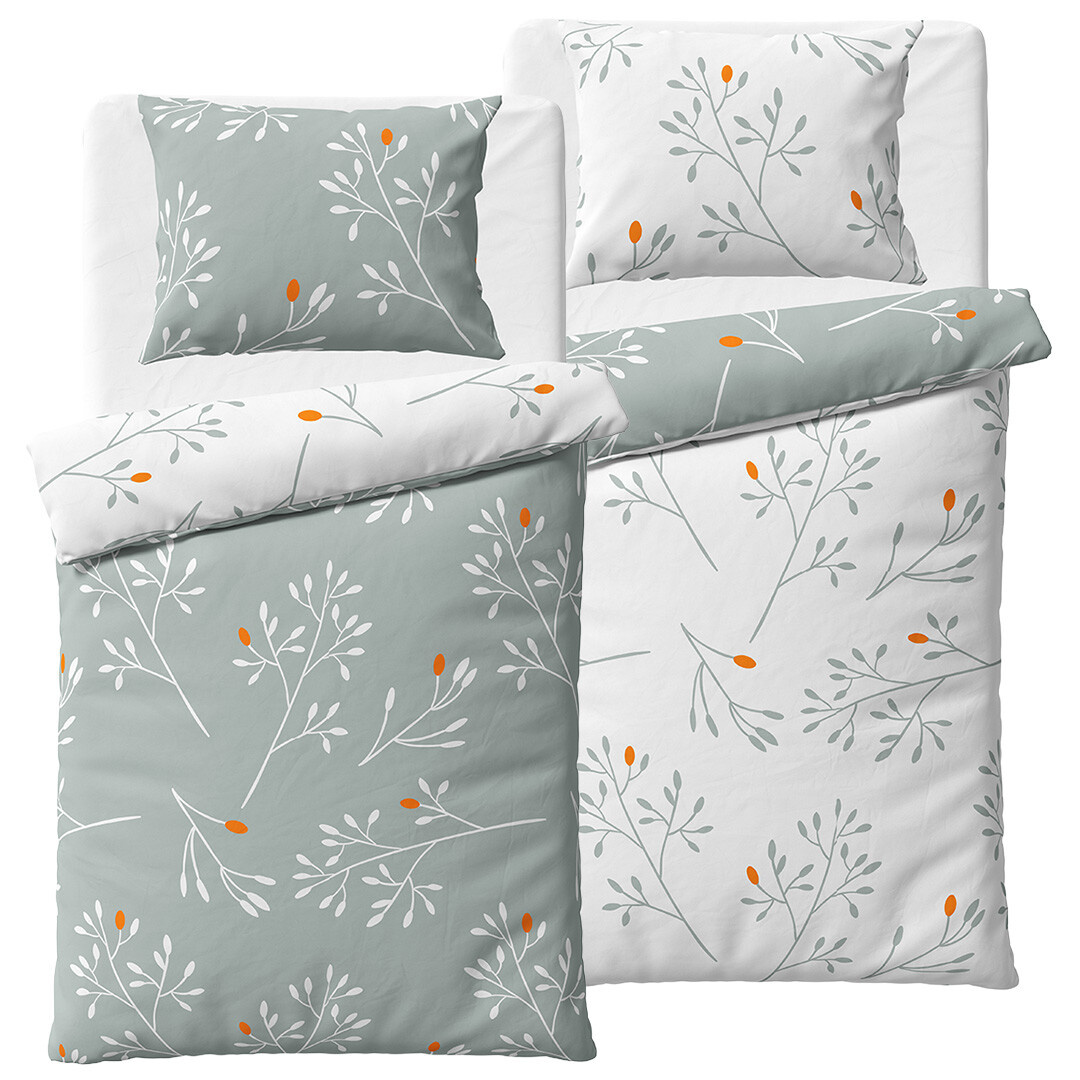 Design povlečení Winter Šedé je inspirován zimní přírodou a nese v sobě jemnost i klid. Na elegantním šedém podkladu se rozprostírají bílé větvičky s drobnými oranžovými plody, které připomínají zmrzlé bobule v ranním mrazu. Motiv je vyvážený, decentní a přitom dostatečně výrazný, aby v ložnici působil stylově a hřejivě. Obrácená strana povlečení přináší světlý tón s obráceným vzorem, což umožňuje měnit vzhled postele podle nálady – od jemně kontrastního po klidně neutrální. Povlak na polštář je laděn ve stejném duchu a společně s přikrývkou vytváří harmonický celek, který dodá ložnici útulnou atmosféru. Kombinace šedých, bílých a jemně oranžových odstínů působí vyváženě a přirozeně, díky čemuž se povlečení hodí do moderních i klasických interiérů.