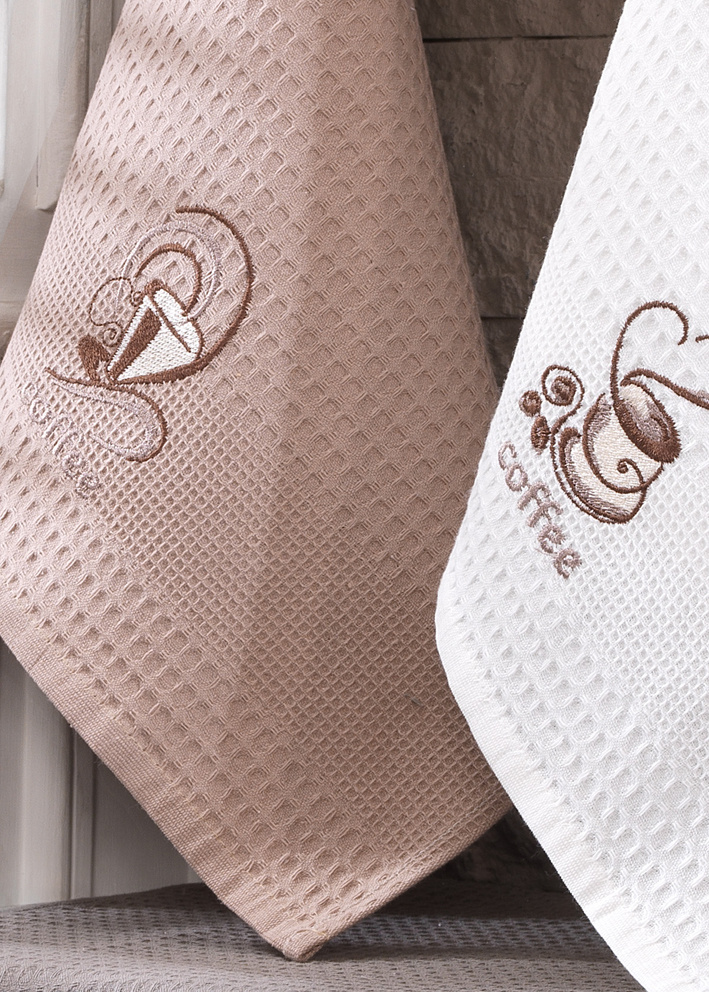 Dárková sada vaflových utěrek 3 ks Čas na kávu, je vyrobena ze 100% bavlny. Vaflový vzor je textilie s vazbou plastického povrchu a jeho charakteristickým jamkováním, kde hustě provázaná místa ve tkanině tvoří prohloubeniny. Utěrky z tohoto materiálu mají zvýšenou savost. Kuchyňské utěrky jsou v balení ve třech barvách, a to bílé, béžové a tmavě hnědé. Na každé z nich je vyšitý kávový hrníček, ve kterém jsou kávové speciality. Rozměry každé utěrky jsou 40x60 cm. Toto balení může být i krásným dárkem, který potěší ne jednu hospodyňku. V naší nabídce vaflové utěrky a kuchyňské ručníky s různými vzory v pastelových a přírodních barvách. Tento výrobek má vysokou savost.