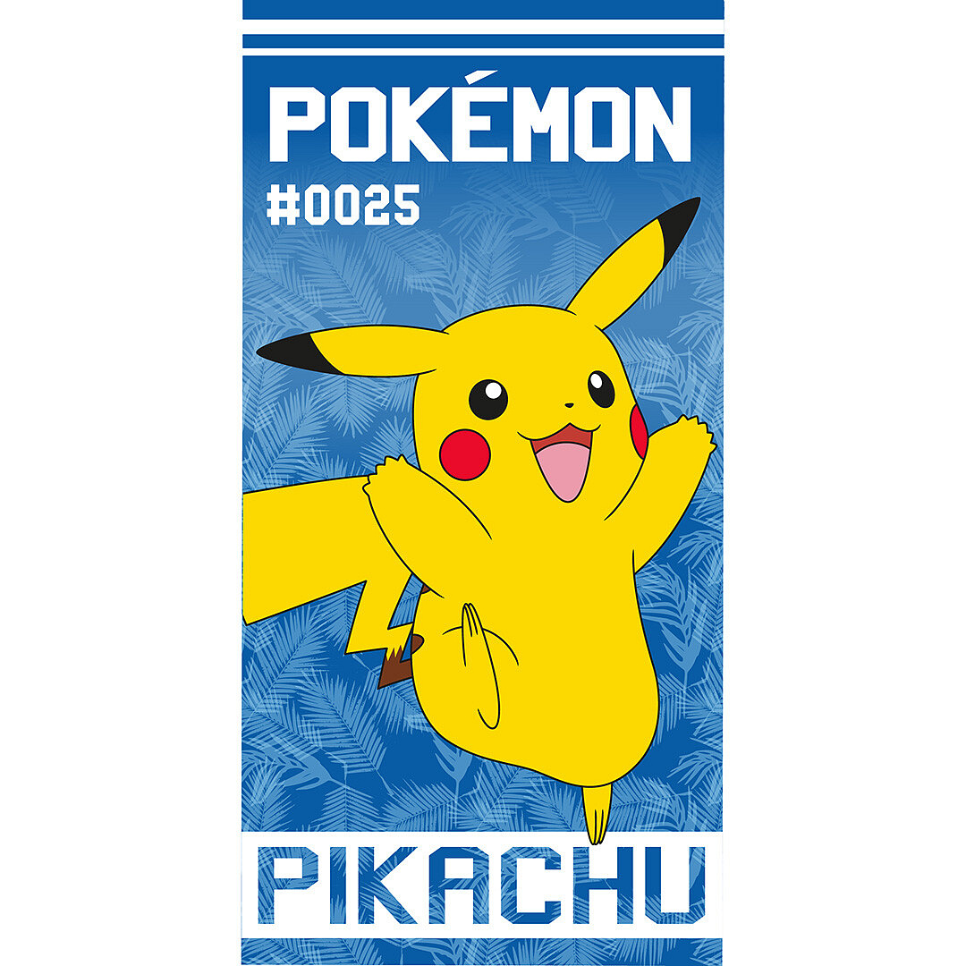 Na osušce dominuje Pikachu, jeden z nejznámějších a nejoblíbenějších Pokémonů na světě. Pikachu je zobrazen v radostném a energickém postoji, který vystihuje jeho přátelskou povahu a elektrickou sílu. Modré pozadí s jemným vzorem dodává designu moderní vzhled, zatímco výrazný nápis Pokémon a označení #0025 odkazují na jeho oficiální číslo v Pokédexu. Tento motiv Pokémon Pikachu patří mezi nejvyhledávanější dětské motivy a potěší každého fanouška světa Pokémon.