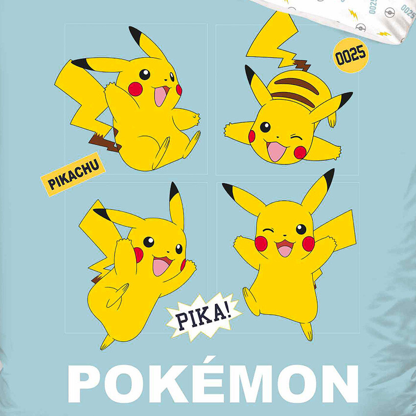 Bavlněné povlečení Pokémon Pika Pika Pikachu je vyrobeno ze 100% hladké bavlny v kvalitě Renforcé a je oboustranné. Rozměr tohoto povlečení je 140x200/ 70x90 cm, pro lepší povlékání je opatřeno zipovým zapínáním. Na lícní straně povlaku přikrývky máme hned čtyři obrázky úžasného pokémona Pikachu. Nejznámější a nejslavnější Pokémon Pikachu byl pojmenován podle japonských slov pikapika, což je citoslovce jiskření a chu, což je zvuk, který vydává myš. Rubová strana povlaku přikrývky je bílá a jsou na ní obrázky pokébalů, blesků a čísla 025. Povlak polštáře je oboustranný, na jedné straně je žlutá myška Pikachu a z druhé strany je vzorem a barvou shodný s rubovou stranou přikrývky. K povlečení se budou hodit prostěradla ve světle modré, vanilkové barvě. Bavlněné povlečení Pokémon Pika Pika Pikachu je upraveno Sanforizací, která zaručuje rozměrovou stálost. Všechna naše povlečení jsou opatřena certifikátem Oeko-Tex Standard 100. Obrázek zobrazuje dva povlaky na polštář, jedná se však o zobrazení vzoru na oboustranném povlaku. Sada tedy obsahuje 1 povlak na polštář a 1 povlak na přikrývku.