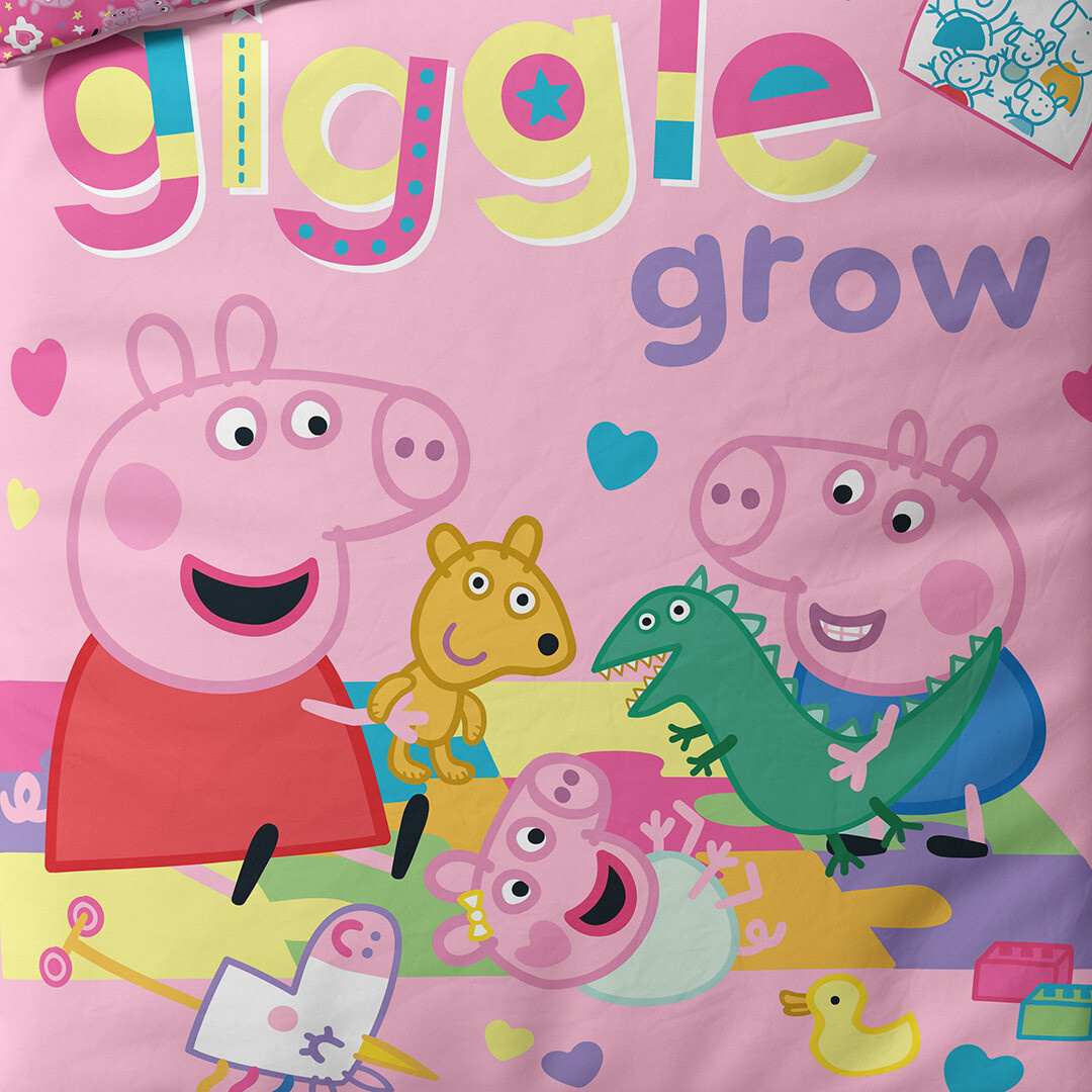 Veselé dětské povlečení Prasátko Peppa Čas na hraní přinese do pokojíčku dobrou náladu a spoustu barevné radosti. Je vyrobeno ze 100% hladké bavlny renforcé, která je hebká, prodyšná a příjemná na dotek. Povlečení má oboustranný design, je opatřeno praktickým zapínáním na zip a splňuje přísné standardy kvality díky certifikátu Oeko-Tex Standard 100. Rozměry povlečení jsou 140 × 200 cm a 70 × 90 cm.