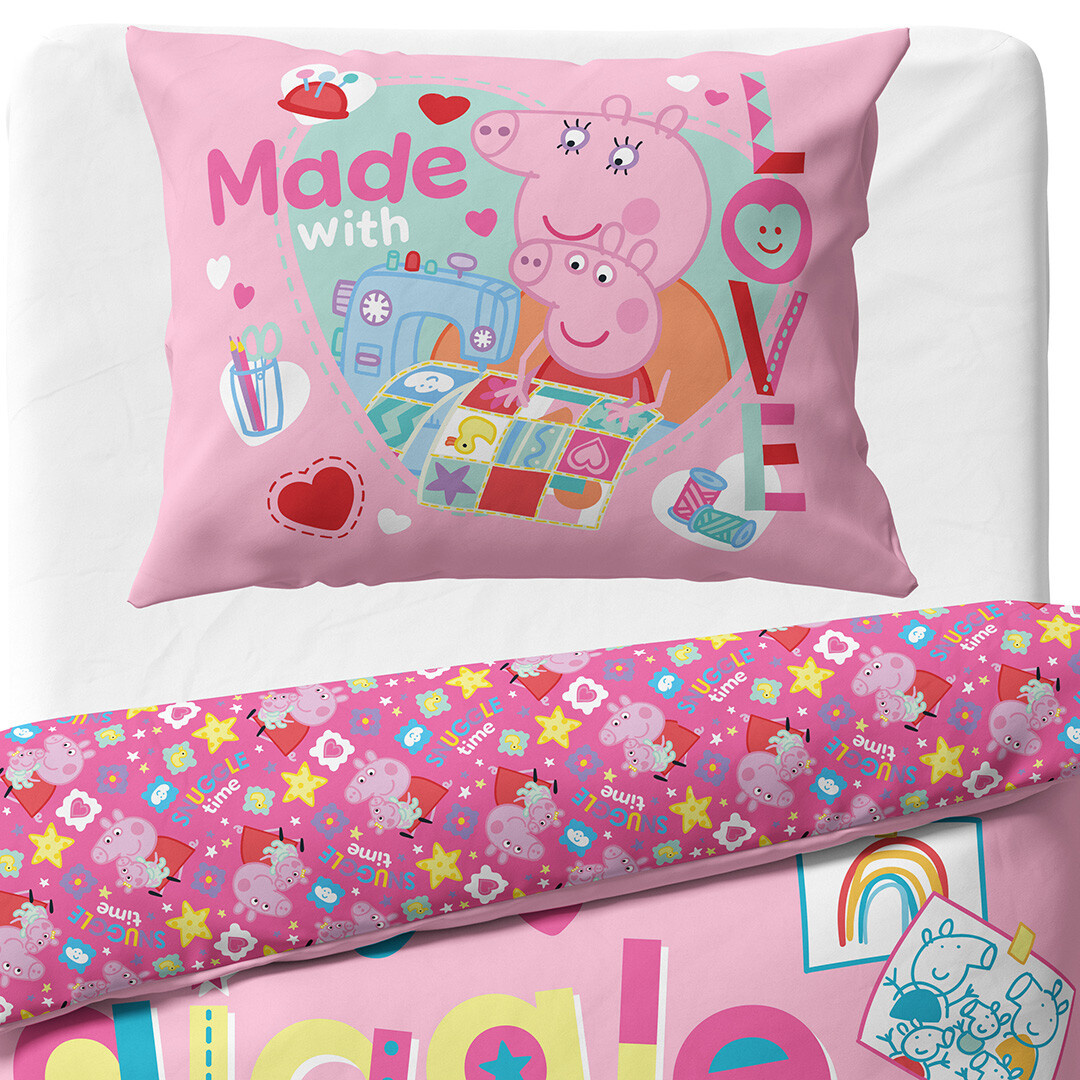 Každé dítě si zamiluje usínání s oblíbenými postavičkami ze světa Prasátka Peppy. Motiv plný barev a úsměvů promění postýlku v hravé místo, kde se rodí krásné sny.