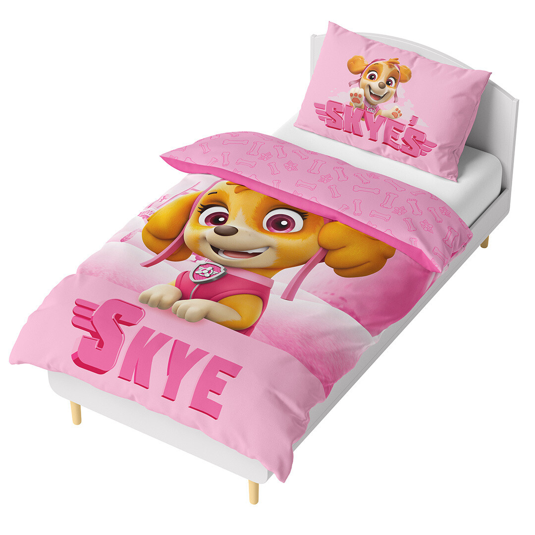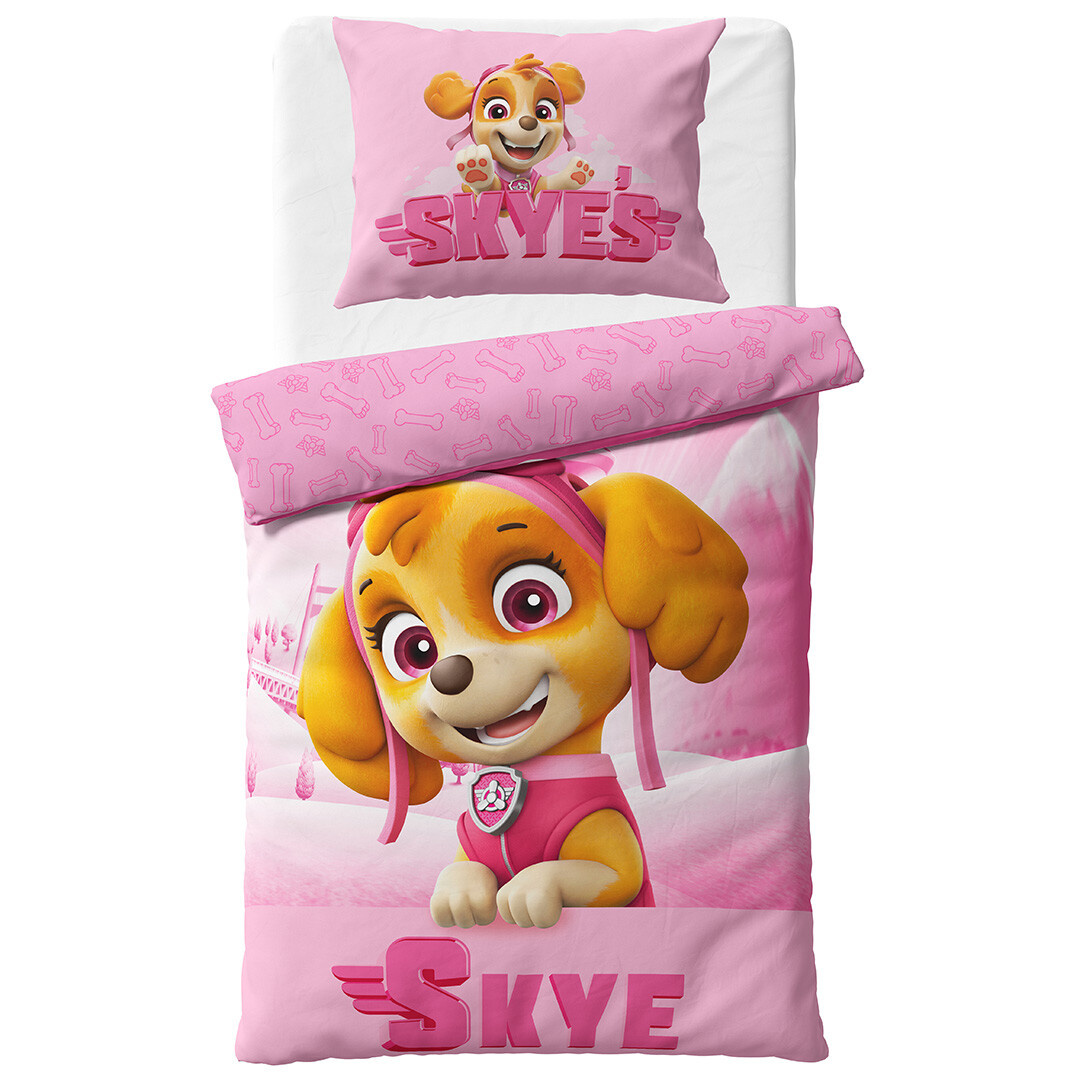 Veselé dětské povlečení s motivem Skye z Tlapkové patroly promění každou postýlku v malé letiště plné dobrodružství. Skye je neohrožená psí pilotka s růžovými brýlemi, vždy připravena zachránit situaci a rozveselit své kamarády. Její optimismus, odvaha a přátelský úsměv rozzáří i dětský pokoj a přinese klidné, ale zábavné usínání.