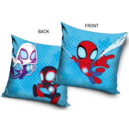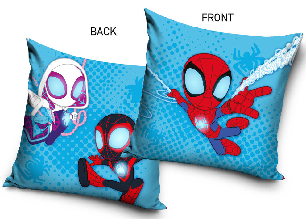 Díky kombinaci světlých barev, výrazných postav a oboustranného provedení působí vzor veselým a energickým dojmem. Polštářek se tak stává nejen praktickým doplňkem, ale i výraznou dekorací, která rozzáří dětský pokoj a potěší malé fanoušky pavoučích superhrdinů.