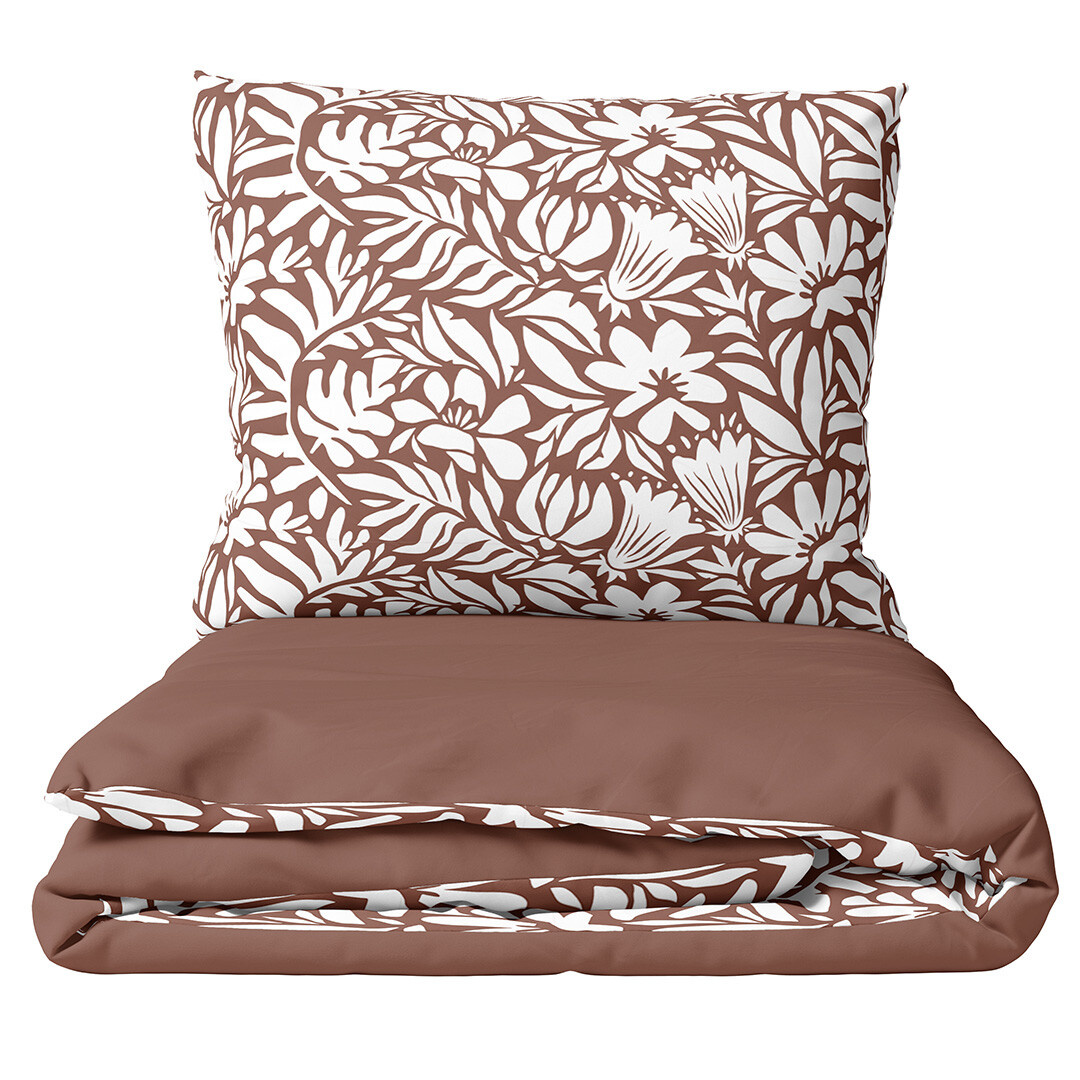 Flanelové povlečení Květinová Harmonie je ideální volbou pro všechny, kteří mají rádi pohodlí, jemnost a přírodní eleganci. Svým hřejivým materiálem i klidným designem zútulní každou ložnici a postará se o maximální komfort během chladnějších nocí. Povlečení je vyrobené z kvalitního flanelu s gramáží 175 g/m², který se vyznačuje jemně česaným povrchem a výbornou schopností udržovat teplo. Látka je příjemná na dotek, hebká a prodyšná, takže poskytuje útulné prostředí pro klidný spánek. Díky snadné údržbě je vhodné pro každodenní použití v zimním i podzimním období. Souprava obsahuje povlak na přikrývku o rozměru 140×200 cm a povlak na polštář 70×90 cm. Povlečení je opatřeno praktickým zipovým uzávěrem, který zajišťuje snadné a rychlé povlékání, perfektní přiléhavost i dlouhou životnost. Výrobek má Oeko-Tex Standard 100, což je mezinárodní certifikát potvrzující zdravotní nezávadnost materiálů a jejich bezpečnost pro každodenní kontakt s pokožkou. Povlečení je oboustranné, z jedné strany je zdobené jemným květinovým motivem v hnědo-bílé barevné kombinaci, z druhé strany má jednobarevný hnědý podklad. Tento elegantní kontrast umožňuje snadno měnit vzhled postele podle nálady, romanticky vzorovanou nebo klidně jednobarevnou.