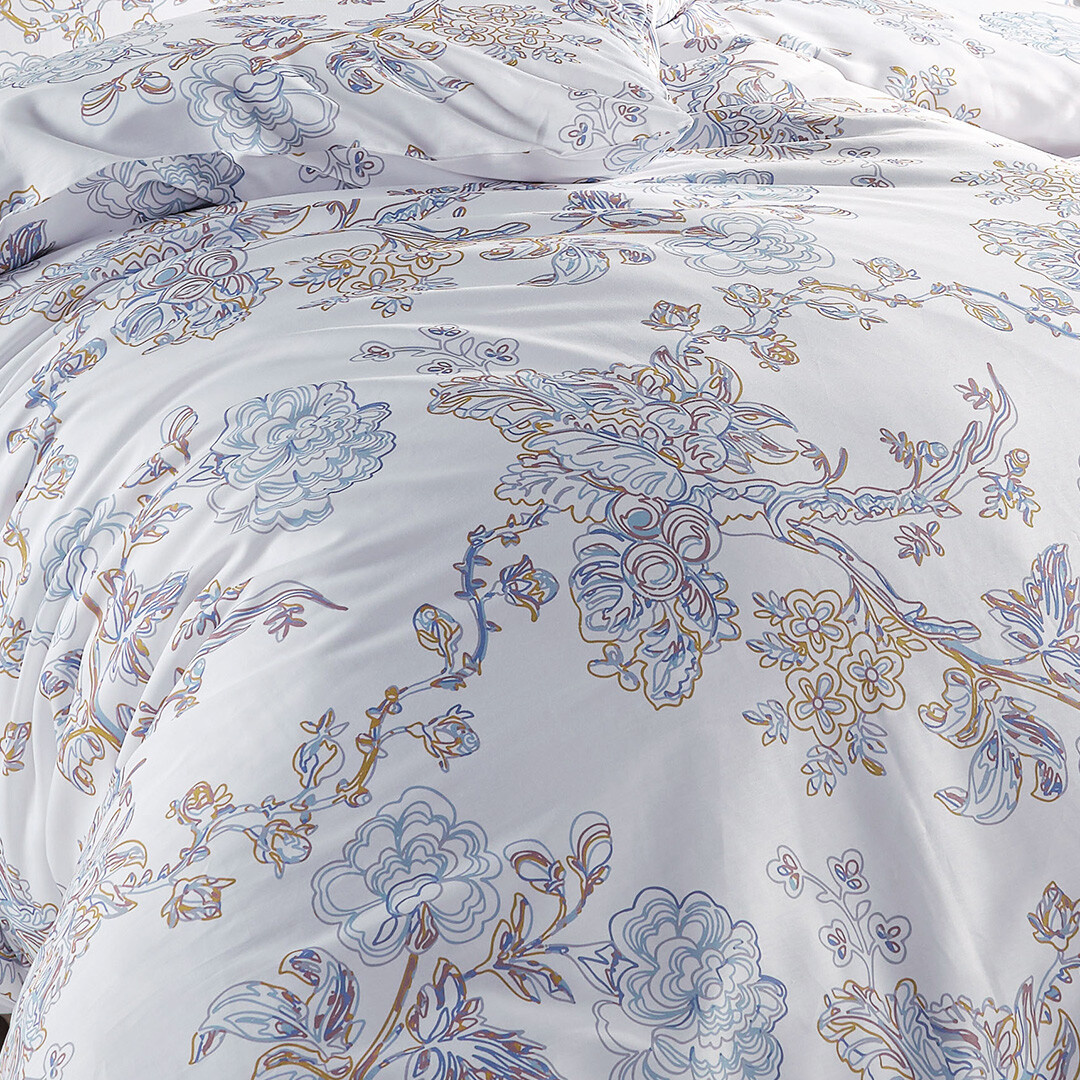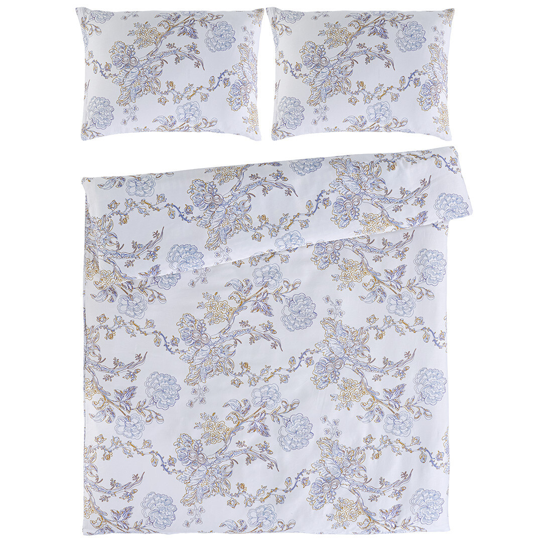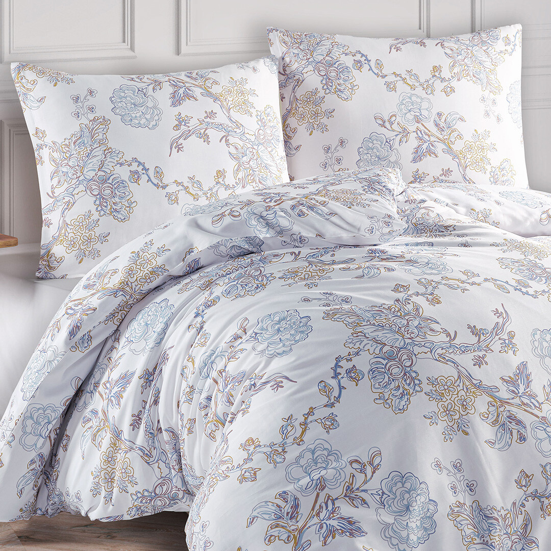 Luxusní saténové povlečení Elegance s květinovými ornamenty, působí velice vznešeně. Tyto květinové ornamenty v jemných barvách světle modré a šedé, dotvoří dokonalý obraz Vaší ložnice. Hlavní předností povlečení je dobrá savost, vzdušnost a hebkost. Díky digitálnímu tisku, vzor krásně vyniká a bude nenásilně dominovat ve Vašich ložnicích a pokojích. Povlečení bude ladit s prostěradly v barvách fialkové, šedé, bílé a modré.