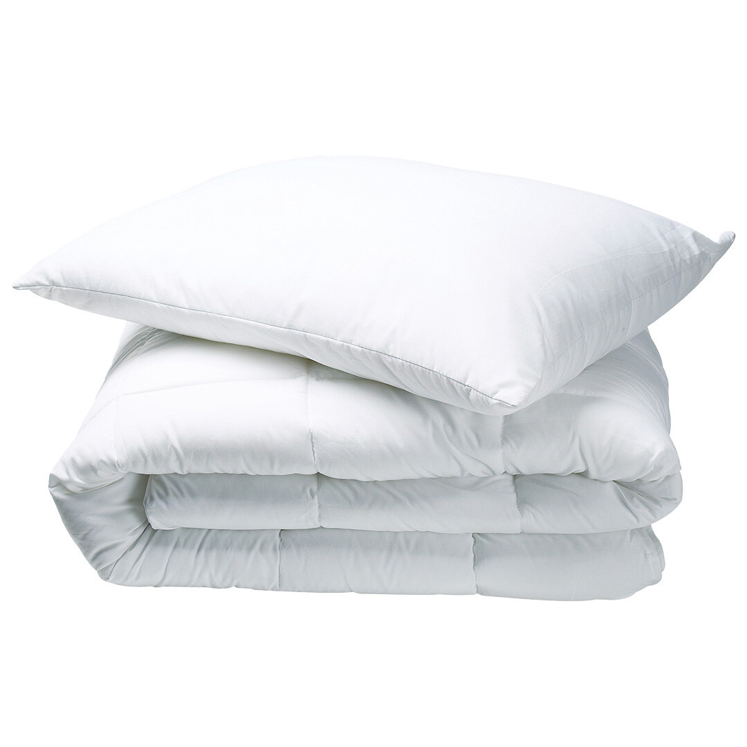 Přikrývku i polštář lze prát až na 60 °C, což účinně odstraňuje alergeny i bakterie. Materiál rychle schne a drží tvar, takže se souprava snadno udržuje v perfektním stavu. Po vyjmutí z pračky protřepejte, sušte vždy ve vodorovné poloze ve stínu. Vždy perte dle pracích symbolů na štítku.