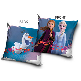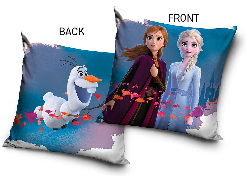 Oboustranný design potěší všechny fanoušky pohádky Frozen. Na jedné straně najdete Annu a Elsu, princezny z Arendelle, které se vydávají na dobrodružnou cestu za záchranou svého domova i tajemného magického lesa. Nechybí ani oblíbený sněhulák Olaf, kterého Elsa se svými kouzelnými schopnostmi vytvořila. Výplň z netkané textilie zajišťuje měkkost, pohodlí a dlouhou životnost tvaru.